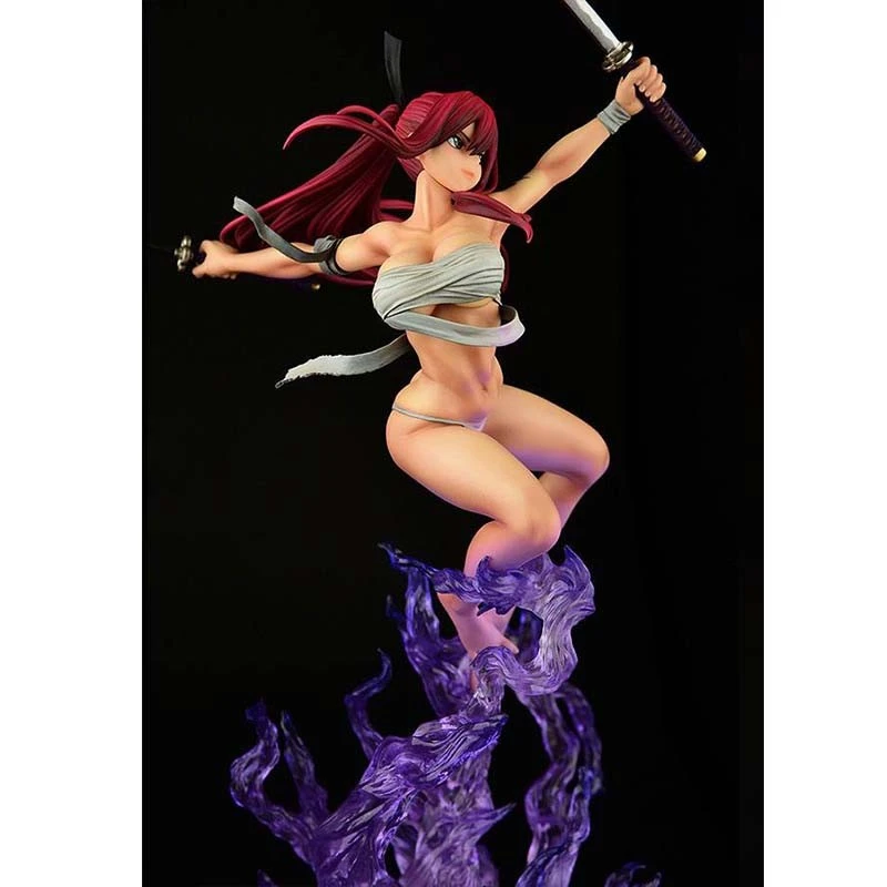 Fairy Tail Figurine Erza Scarlet Samurai Ver. Shikkoku version du fabricant Orca Toys. Statuette en PVC, échelle 1/6, taille : 43 cm sur socle décor avec le pantalon amovible. Voici une magnifique représentation de Erza dans une pose ultra dynamique.