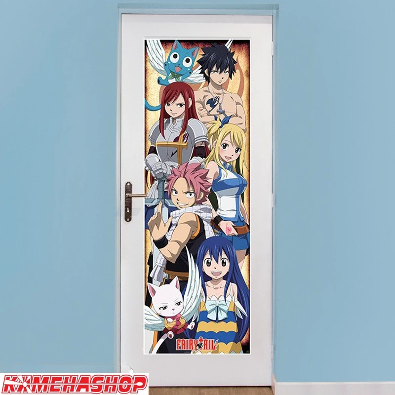Fairy Tail Poster de porte Guilde. Affiche manga maxi format : 53 cm x 158 cm qui représente les membres de la guilde Fairy Tail : Natsu, Grey, Erza, Lucy, Wendy, Happy et Carla.