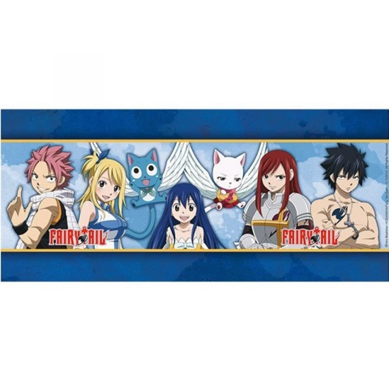 Mug Fairy Tail Team. Mug (grande tasse) du manga Fairy Tail en céramique de haute qualité. Contenance standard 320 ml avec une belle illustration qui représente les membres de la guilde : Natsu, Lucy, Happy, Erza, Grey, Wendy et Carla.