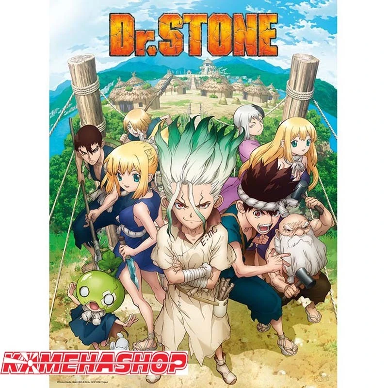 Dr Stone Poster Groupe. Affiche officielle Dr Stone format 52 cm x 38 cm de Senku et ses compagnons du royaume de la science.