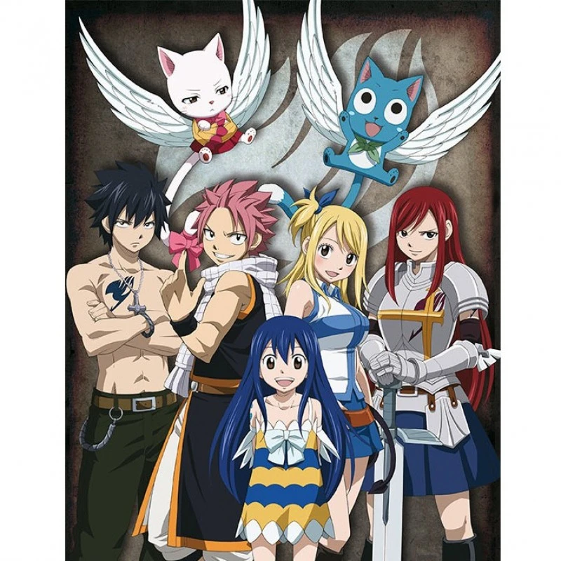 Poster grand format de la Guilde Fairy Tail. Poster du manga Fairy Tail taille : 98 cm x 68 cm. Magnifique affiche Fairy Tail regroupant Erza, Grey, Lucy, Natsu, Happy, Wendy et Carla.