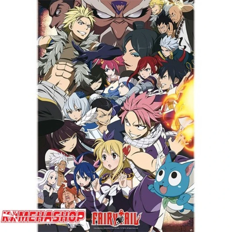 Fairy Tail Poster Fairy Tail Guild Versus. Poster manga,impression haute qualité, taille : 91,5 cm x 61 cm. La guilde Fairy Tail s’oppose aux guildes de Sabertooth et Lamia Scale durant le tournoi de la magie sur cette magnifique affiche Fairy Tail.