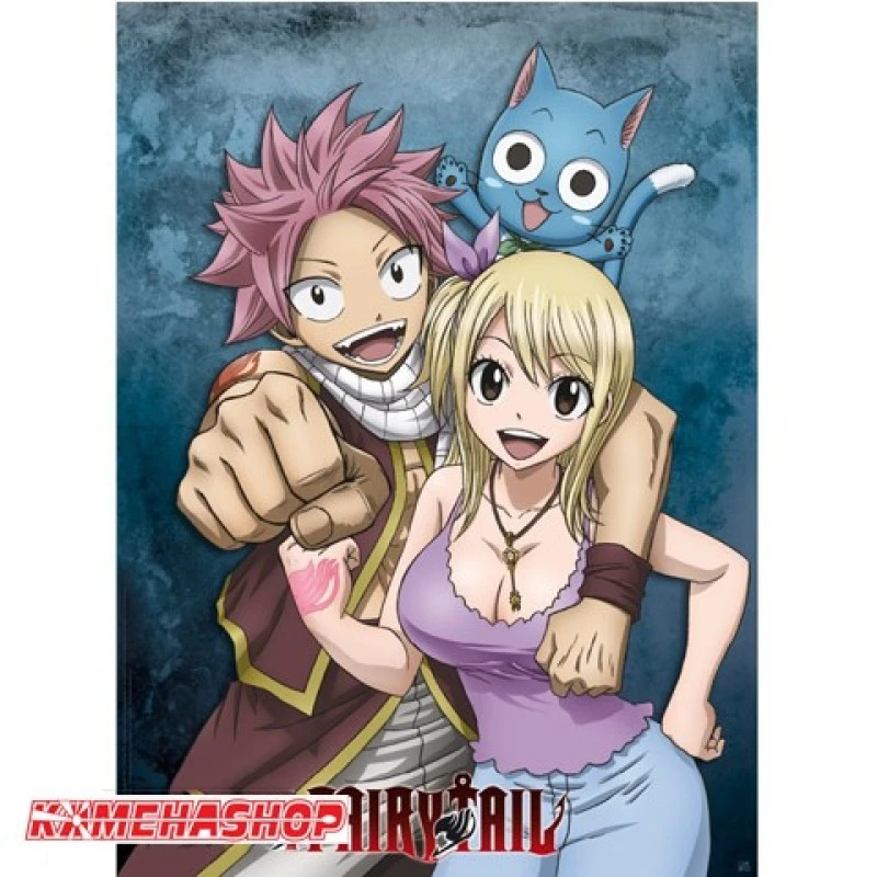 Poster Fairy Tail de Natsu, Lucy et Happy. Poster manga impression haute qualité, format 52 cm x 38 cm. Fans du manga Fairy Tail voici l’affiche idéale pour décorer votre chambre.