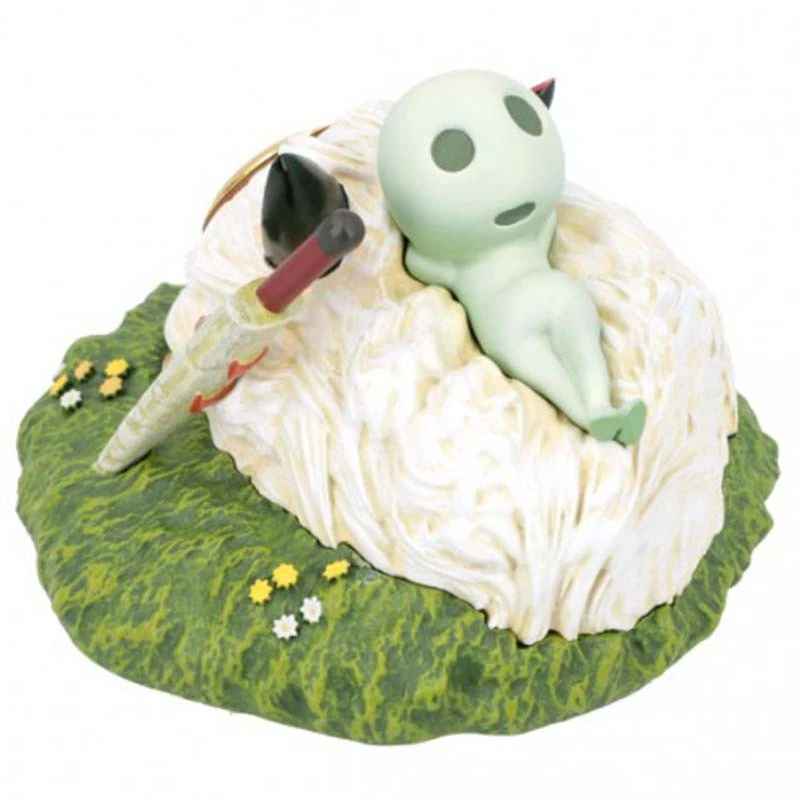 Princesse Mononoke Horloge Masque et Kodama. Horloge officielle Studio Ghibli taille: 8 cm env avec le masque et la lame de Princesse Mononoke, le masque est le cadran, un kodama est allongé sur le dessus pour créer une scène.