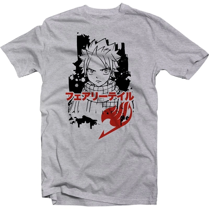Fairy Tail T-shirt Natsu Dragnir Kanji version. Voici le t-shirt manga officiel gris chiné 100% coton du chasseur de dragon de la guilde de Fairy Tail Natsu.